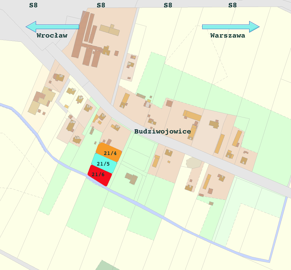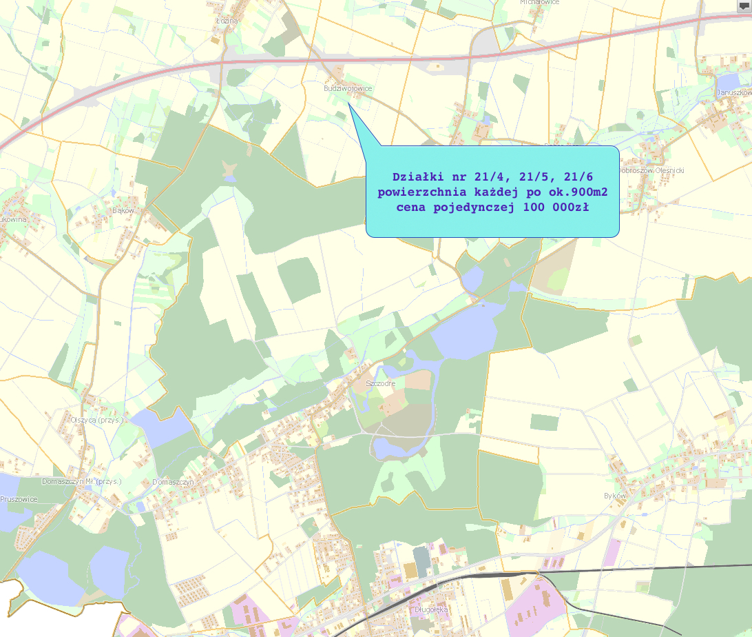 Na sprzedaż trzy działki budowlane każda po ok. 900m² zlokalizowane w miejscowości Budziwojowice gm. Długołęka.