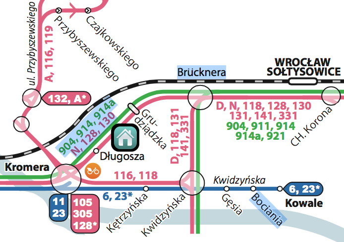 Bardzo dobry punkt komunikacyjny we Wrocławiu.